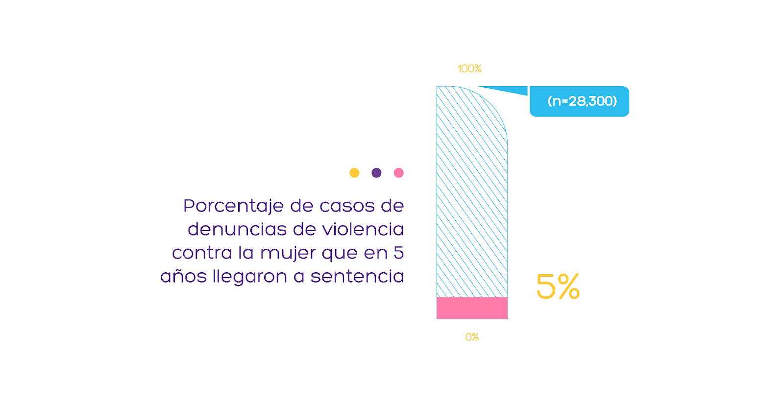 Al evaluar estos datos, se puede inferir que la problemática es aún más preocupante, ya que solo 5 de cada 100 mujeres que denuncian violencia, tienen la posibilidad de acceder a justicia, esto sin considerar que el tipo de sentencia puede ser condenatoria o absolutoria, aún así, no deja de preocupar que esas 5 mujeres que tuvieron acceso a justicia se enfrenten a un sistema que responde a estos casos con procedimientos que las revictimiza y vulnera reiteradamente.