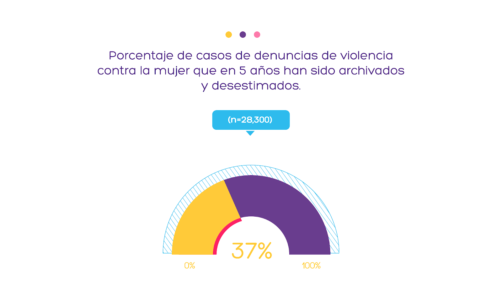 4. Se identificó que, a marzo del año 2022, el porcentaje de casos desestimados y archivados de denuncias de vulneraciones contra mujeres jóvenes cometidas en el 2017, era del 37%. (10,600/28,300)
